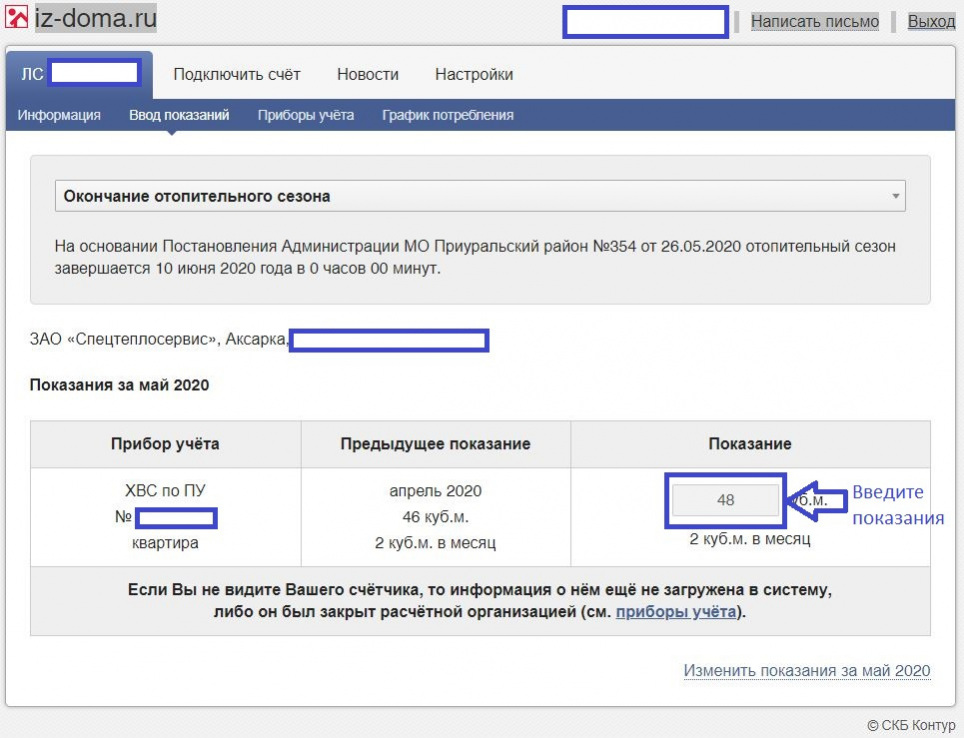 Для подачи показаний пройдите во вкладку "Ввод показаний" и внесите данные в поле "Показание". Текущие показания не могут быть меньше предыдущих. В случае, если потребление воды превысит потребление прошлого месяца более чем в два раза, будет предупреждение системы о правильности ввода. Пожалуйста, перепроверьте показания.